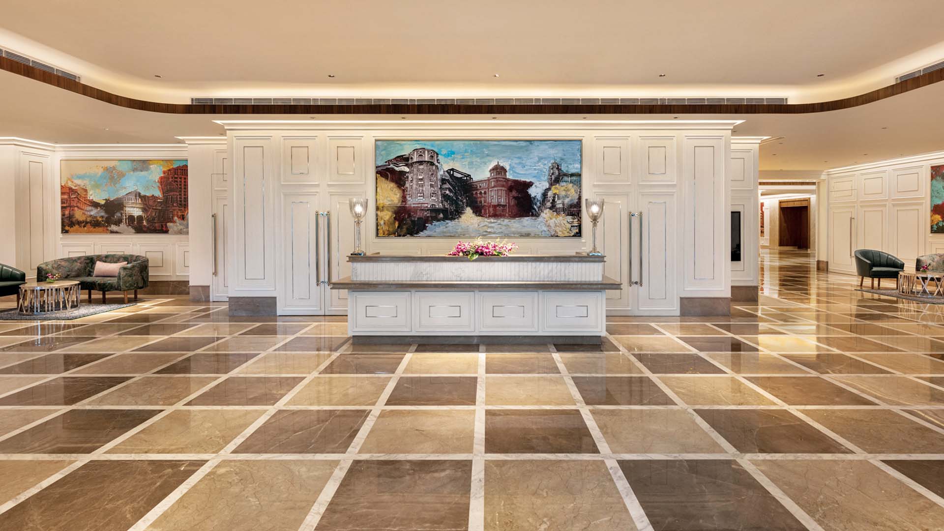The hotel folllows the Art Deco theme, represented in the lobby through geometric elements, an important part of the style.