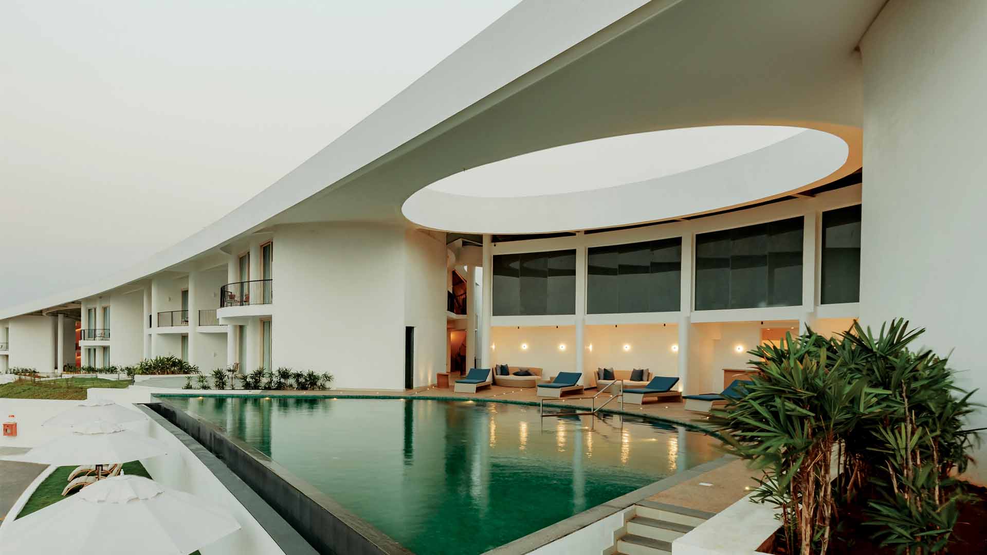 The micro-boutique resort has four uniquely named villas, each with its own meaning. Every two-bedroom villa is designed to open to nature, with floor-to-ceiling glass partitions that slide away to reveal a private swimming pool and interrupted views of the vast ocean beyond. The villas, with their wooden slat doors, Mangalore tile roofs, and open layouts, sit in complete harmony with the local landscape and cultural milieu to offer discerning travellers a space of seclusion and peace.