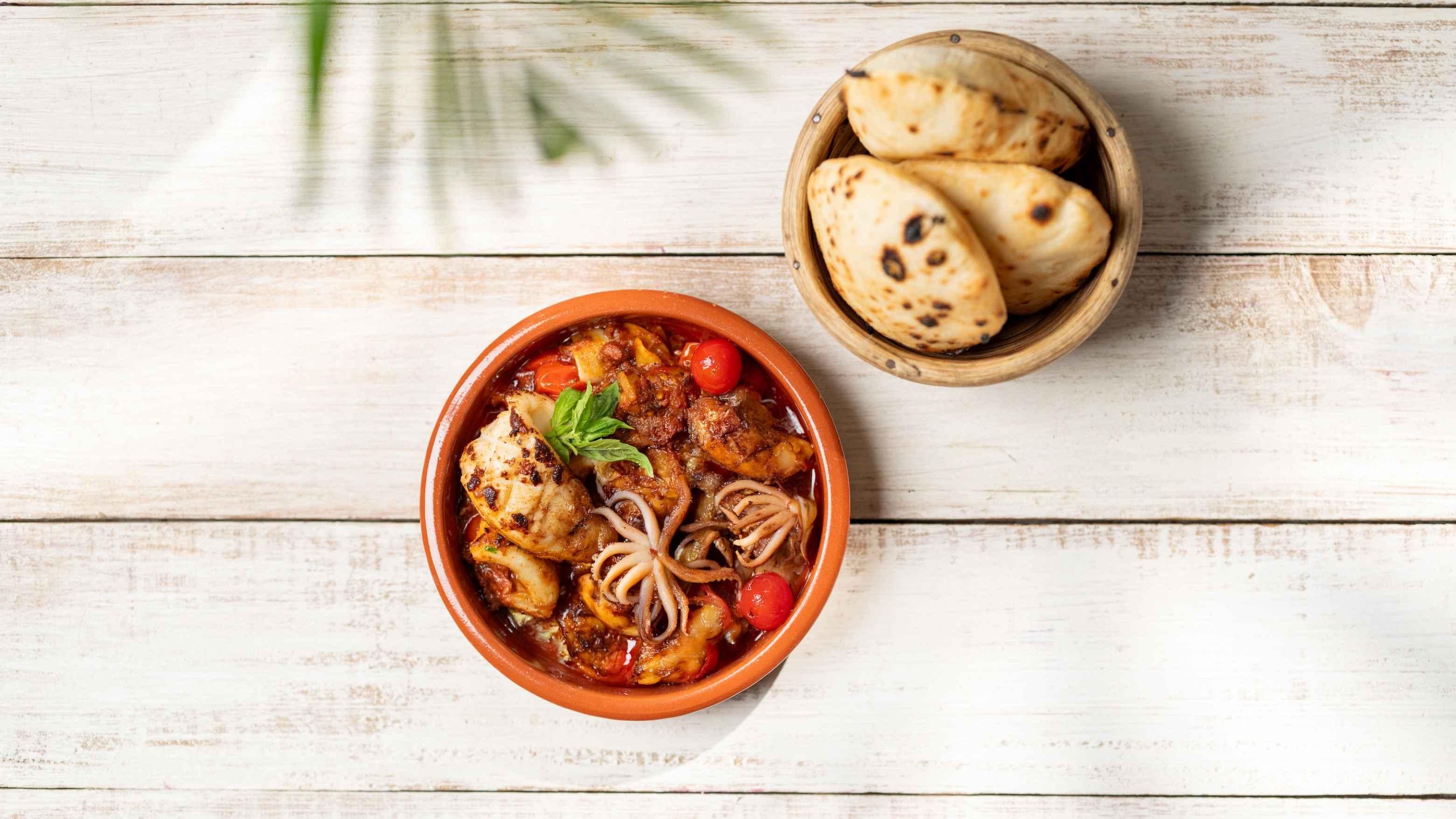 “I am inspired by the region’s seasonal bounty,” he says. “From fresh seafood to Roman-style flatbreads, comforting risottos to small plates.” Recent additions include smoked duck, Arabic jackfruit tacos with toum and fig pickle, and hand-cut chips. His smoked duck salad reworks his signature amla and mango formula into a seafood-led version.