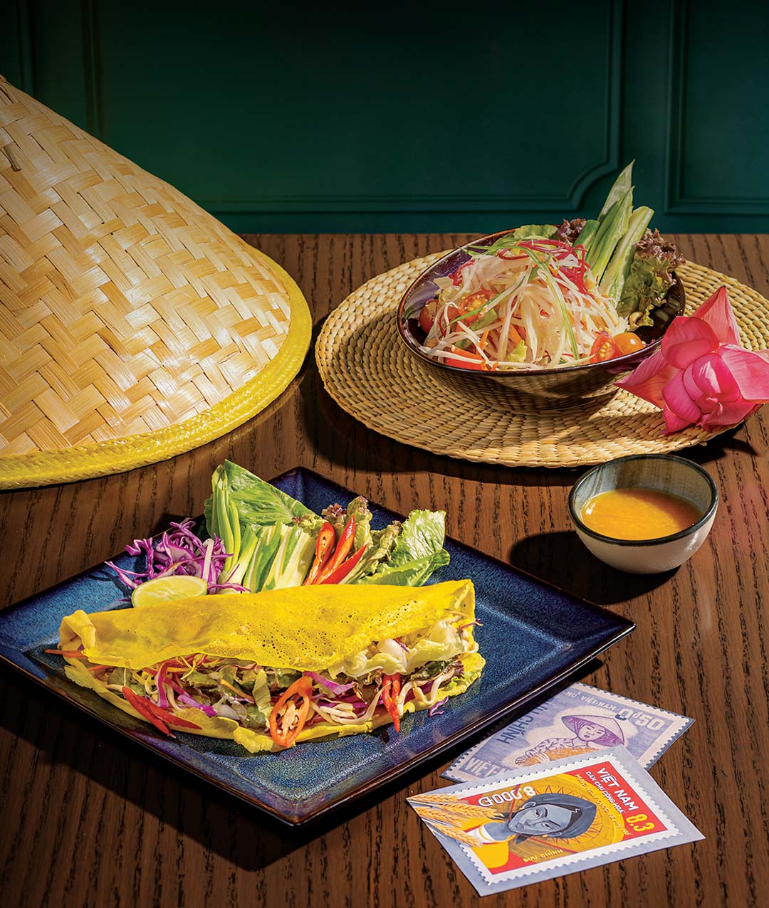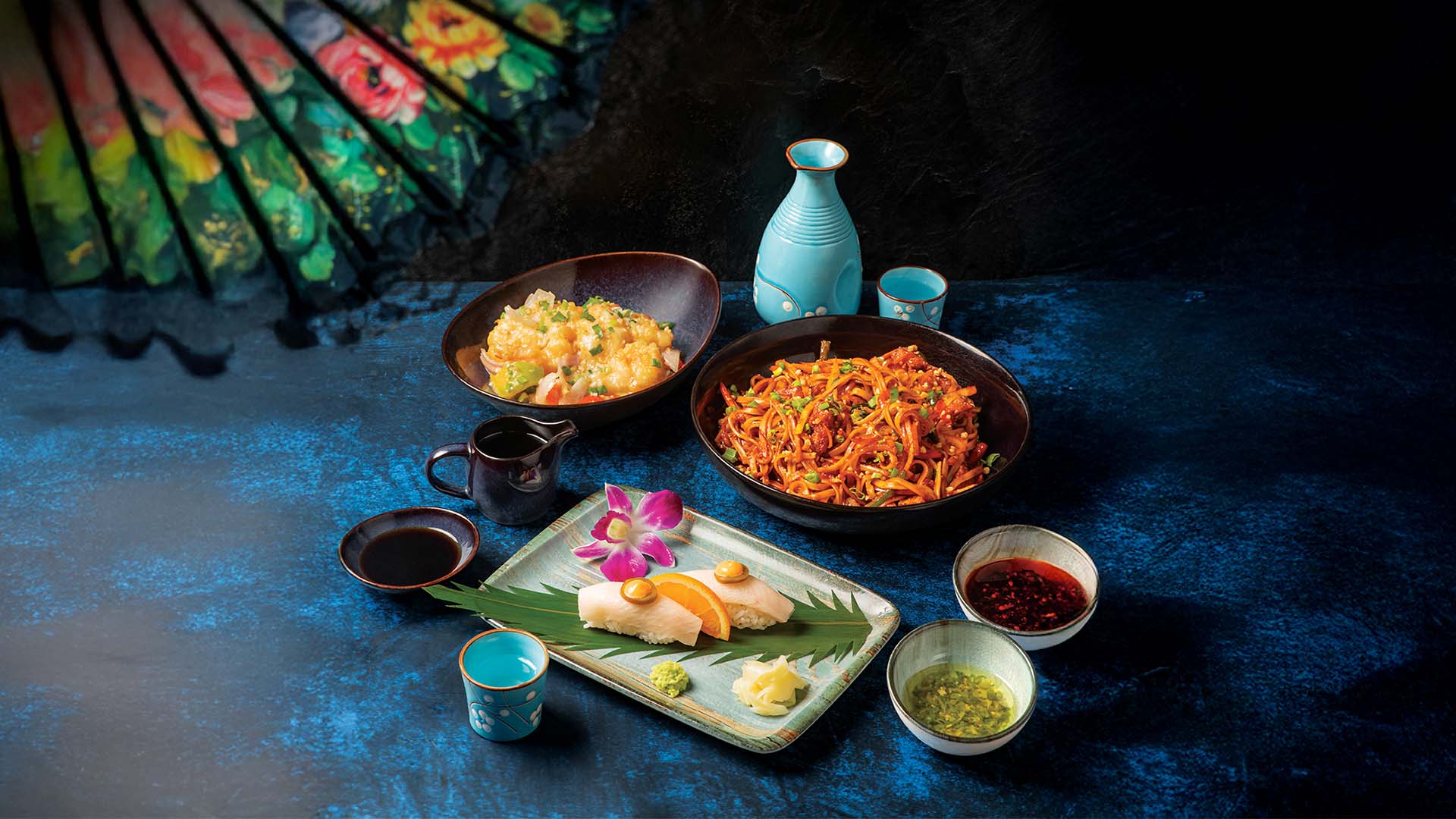 Blanched Spinach with Sesame Seeds, from Japan’s Shikoku island, is lightly seasoned and dressed with roasted sesame, rice vinegar, and a hint of evaporated milk. “It’s an Indian-Asian adaptation balancing sour, spicy, and sweet,” says Chef Sadiq. Seasonality guides the menu, and every dish reflects Japan’s layered culinary influences. “Even tempura came from the Portuguese; the Japanese adapted it with cold-water batter for crisp exteriors and tender interiors,” he explains.