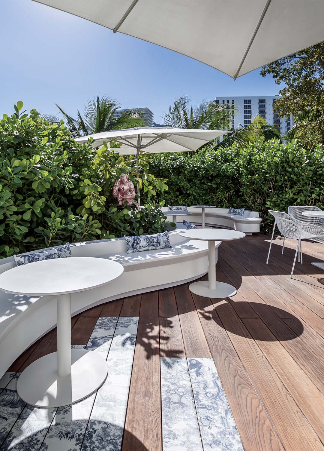 Within this sprawling Dior retail space is also La Pâtisserie Dior & Café Dior, which sits beneath a luminous glass roof with direct views of the boutique’s rose garden.