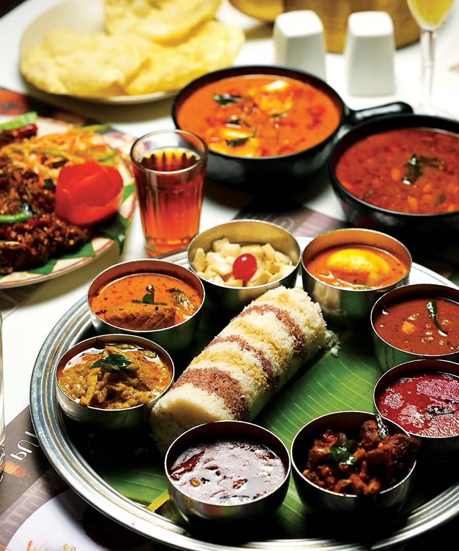 Spice Fort Hotel’s bold red entrance opens to frescoed fruits, vegetables, and spices. Its kitchen excels in Indian-Continental and uses the hotel’s organic farm/orchard ingredients. In Mattancherry, head to Kayees Biryani, a no-frills eatery that serves Kerala-style biryani with mutton, chicken, fish and prawns, besides korma and mutton curry.