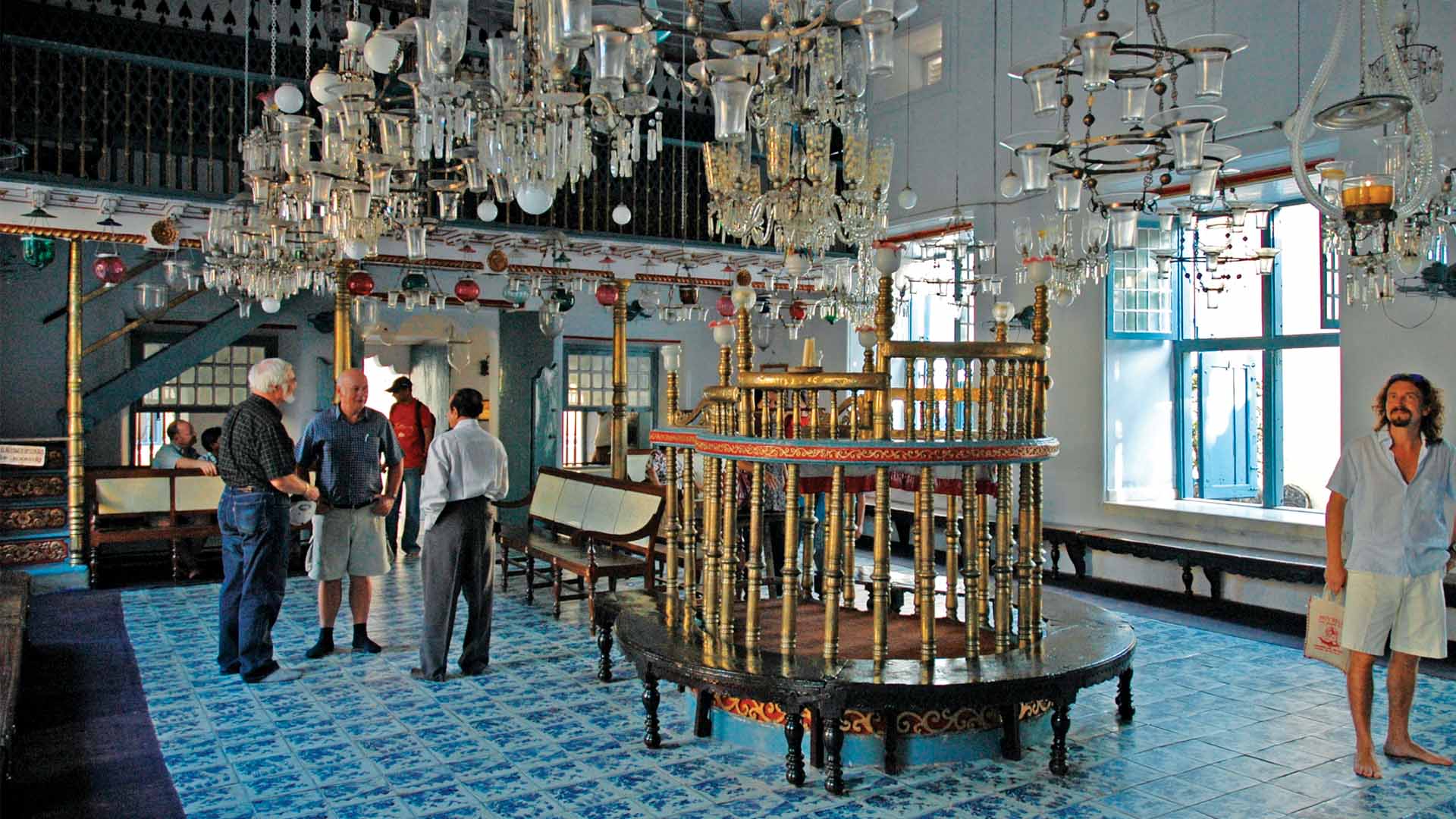 Jew Town has a languid morning feel. Yoga Art Café does bold Americanos (chocolate-caramel hints), French toast, and pancakes. After, stroll through Jew Town, a treat for the senses with rows of spice shops, antique stores from where you can buy eclectic stuff: beautifully painted cow heads (recommended), spices, sarees, vintage clocks, brass lamps, mirrors, curios and more. Then head to the 16th-century Paradesi Synagogue, the oldest active synagogue. Blue hand-painted tiles from China, chandeliers from Belgium and an Oriental rug that was a gift from the Ethiopian emperor Haile Selassie I set the aesthetic tone.