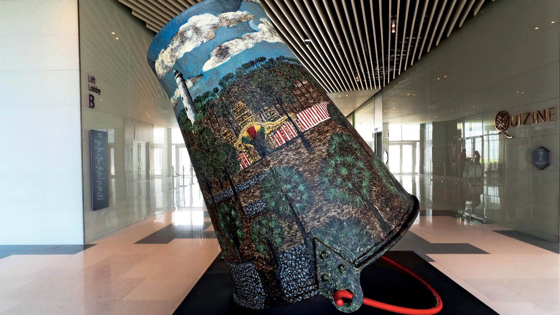 Within the complex, art is effectively omnipresent. The portfolio includes both commissioned works by leading Sri Lankan artists and rotating works from partner galleries. The works are deeply evocative of the country. Paradise Lost by Priyantha Udagedara on Level 23 captures the instance before the coloniser tampered with the picturesque landscape and the destruction of the pristine wilderness. On the same level, you can’t miss a huge upturned bucket. That’s Gayan Prageeth’s Before Nineteen Eighty Three, which explores how everyday household objects are used for ethnic profiling and violence during the nation’s civil war. Another unmissable work is Shifting Shapes of the Informal Mind, a spinning top featuring a mix of vibrant colours, created as a tribute to Cecil Balmond.